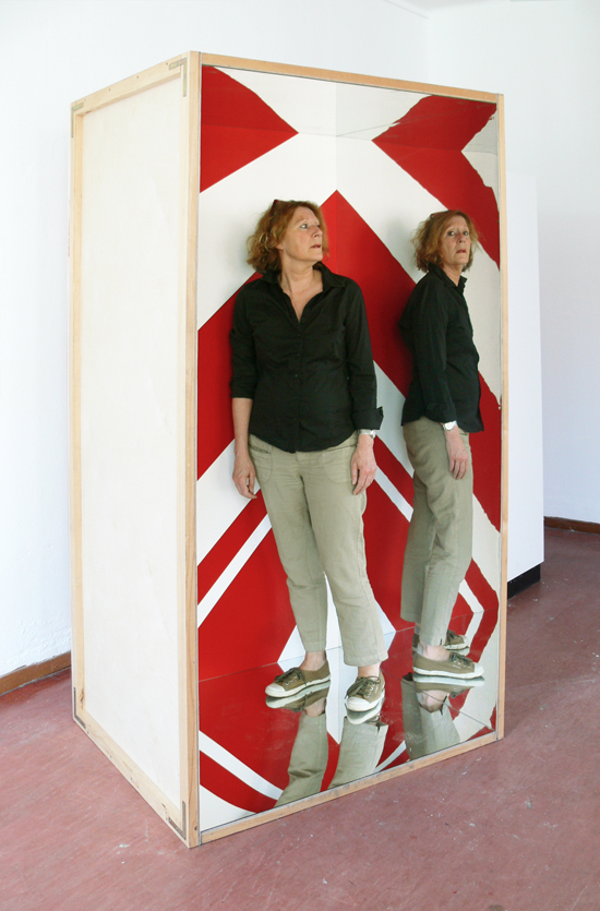 Preussisch Rot, Spiegelbox, Holz, Akrylfarbe, Spiegel, 220 x 150x 80 cm, 2010