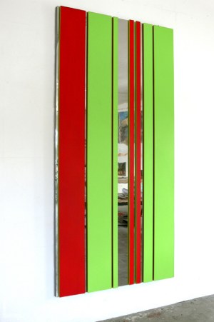 Holz, Spiegelfolie, Acrylfarbe, 2005