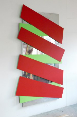 Holz, Spiegelfolie, Acrylfarbe, 2005